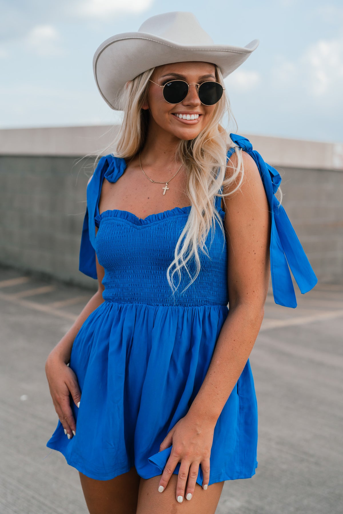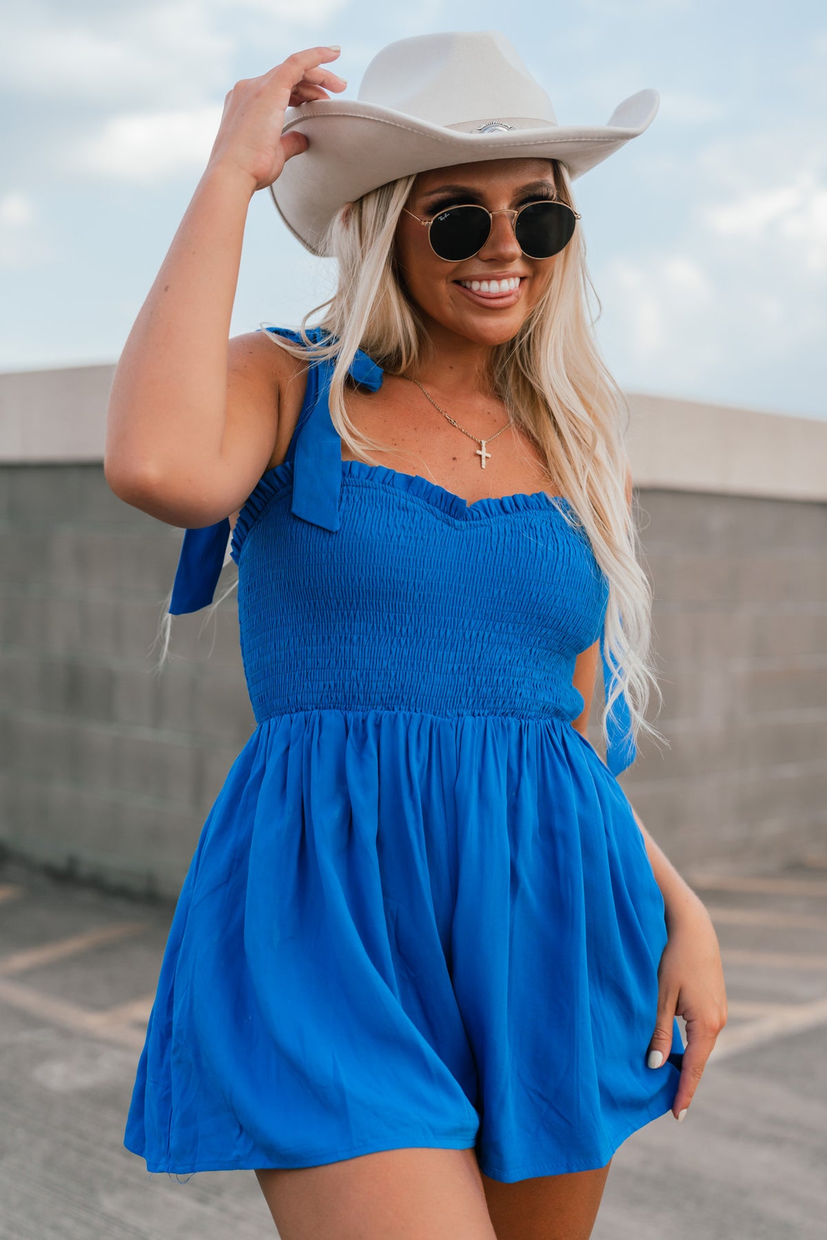 Feeling Blue Smocked Romper