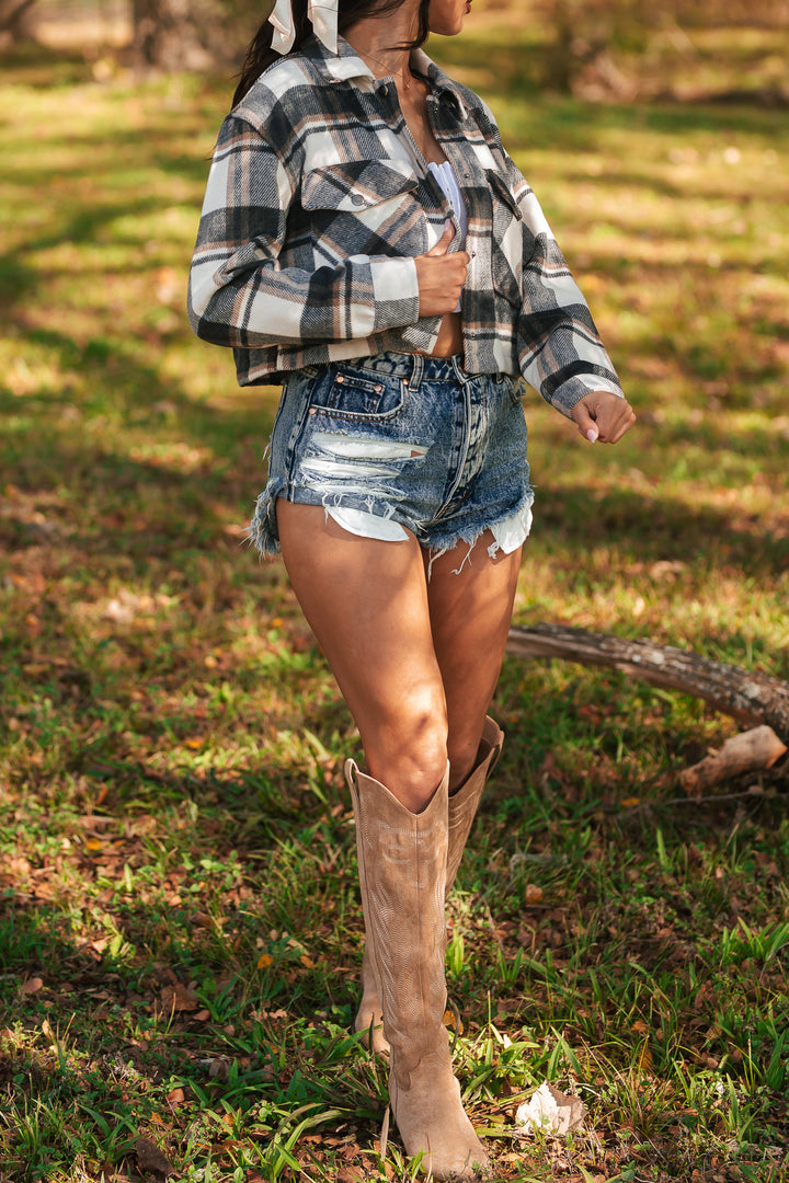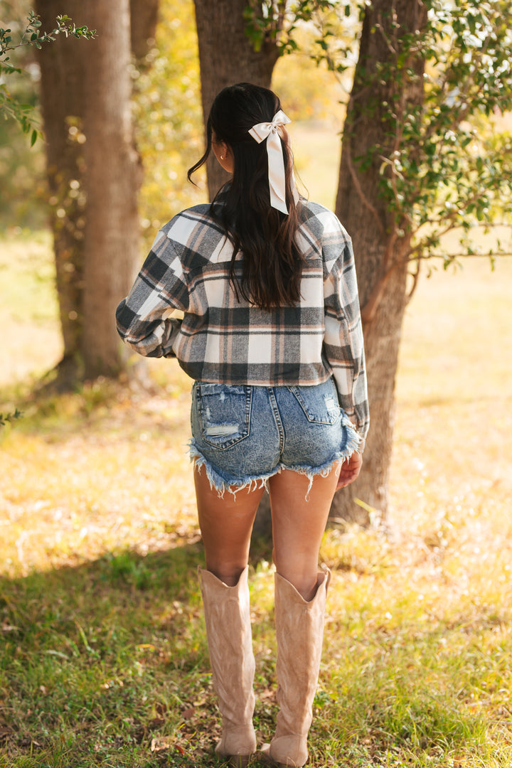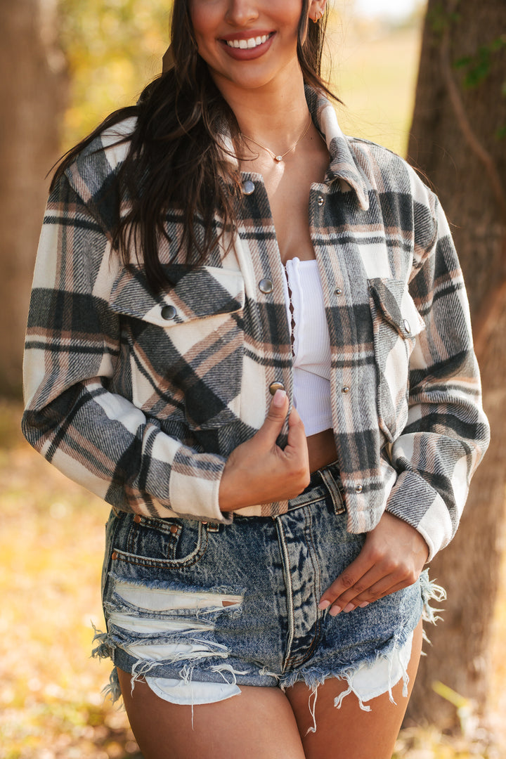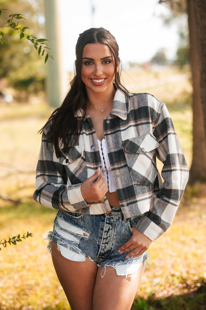 Midnight Harvest Cropped Shacket (Charcoal)