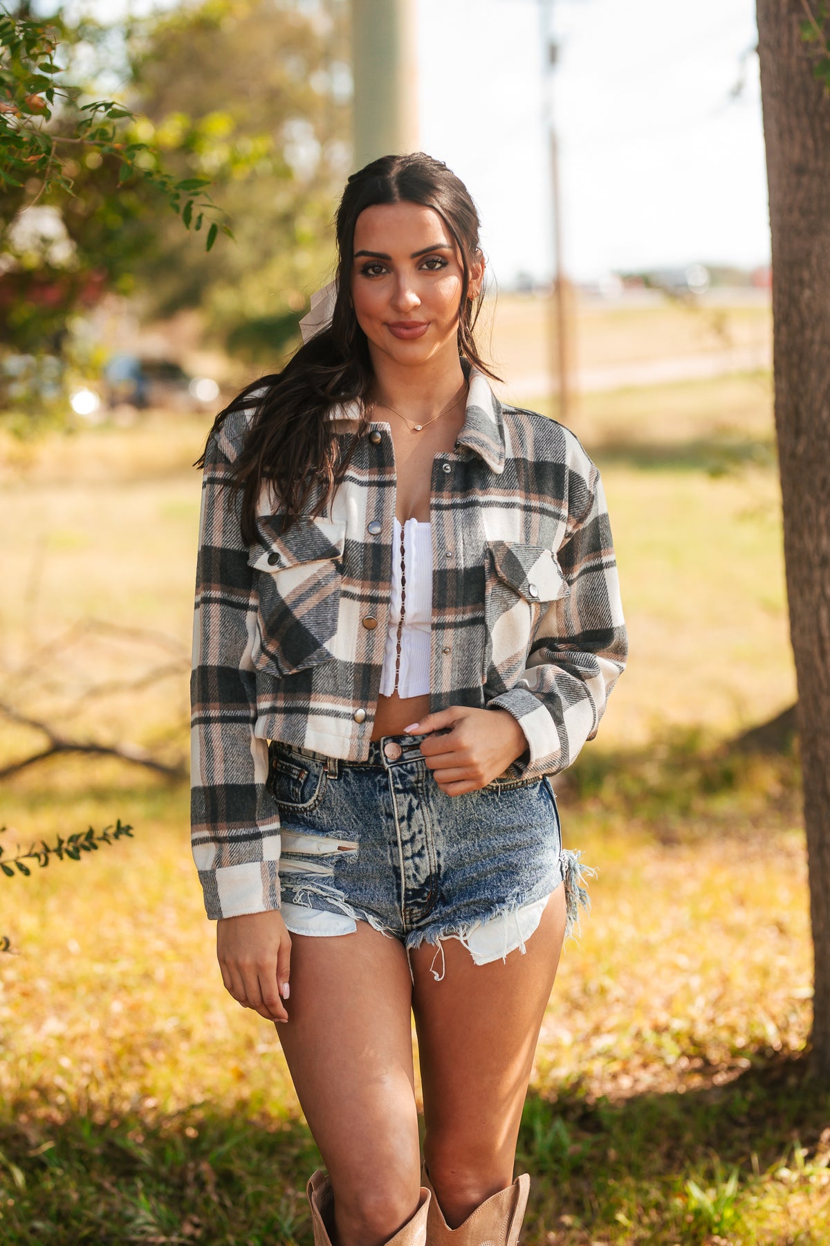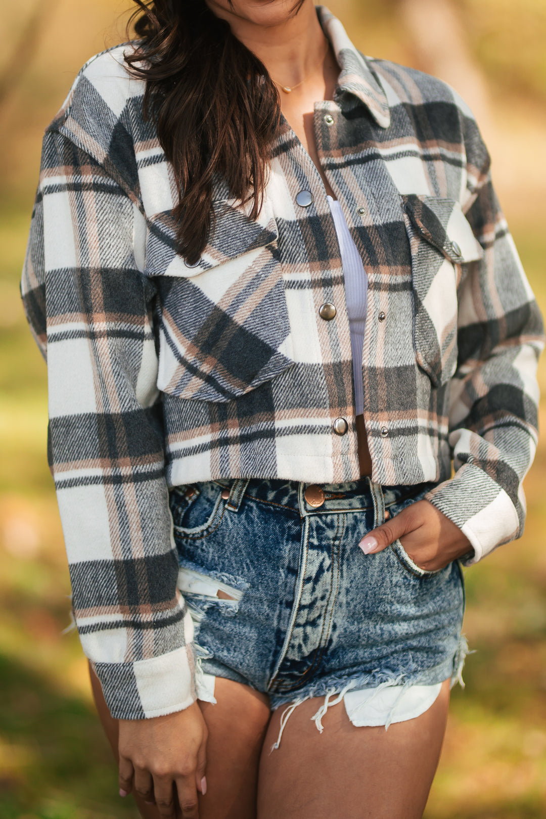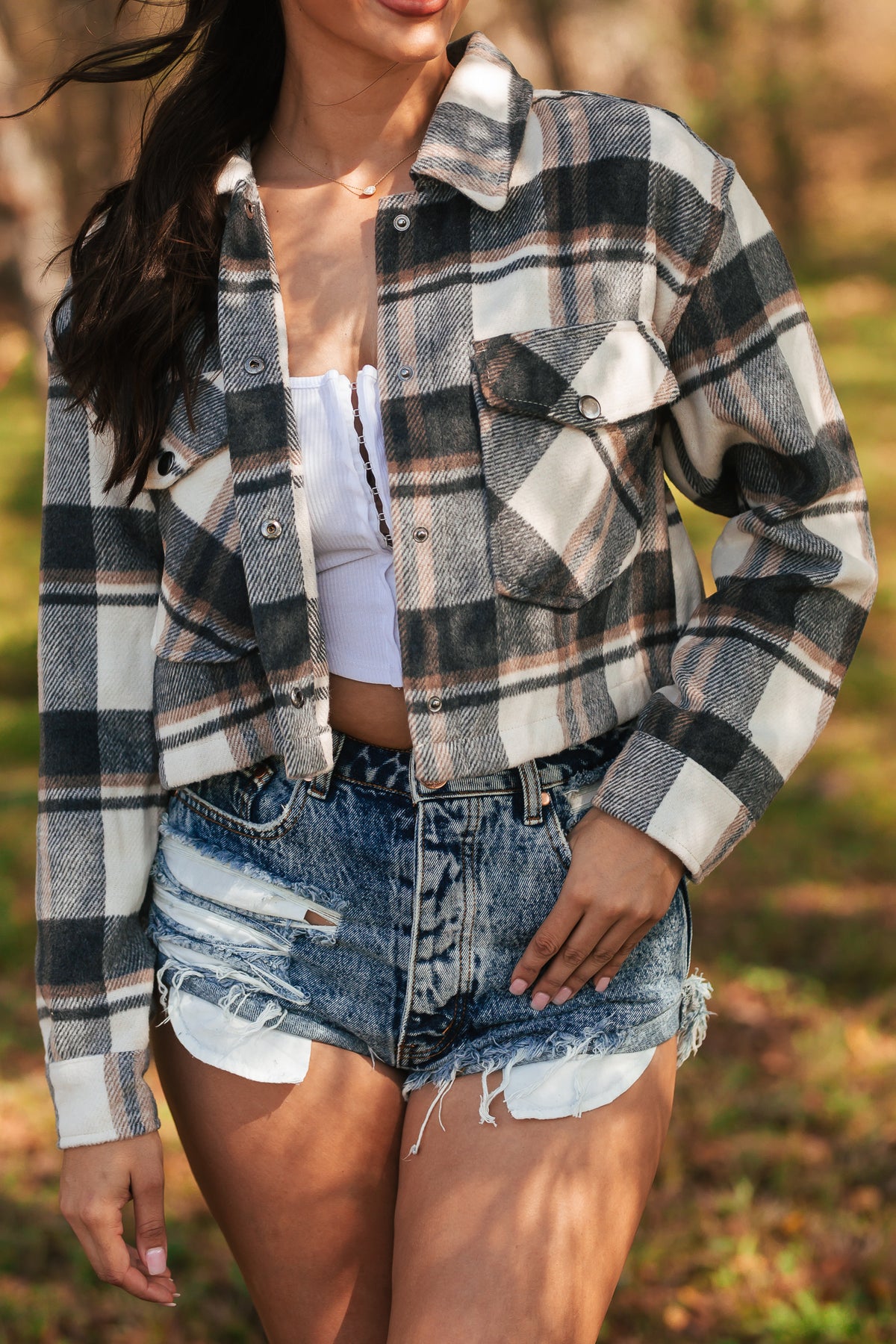 Midnight Harvest Cropped Shacket (Charcoal)