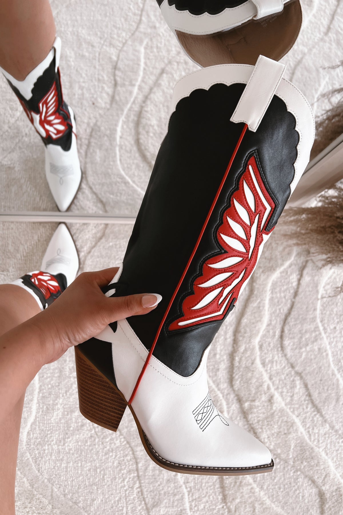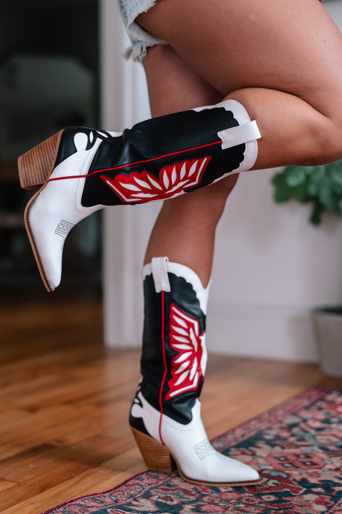 Riding in to save your cowboy dreams. Our Crazy Love Cowboy Boots are the perfect rodeo boot with gorgeous western detailing and multi-paneled details.