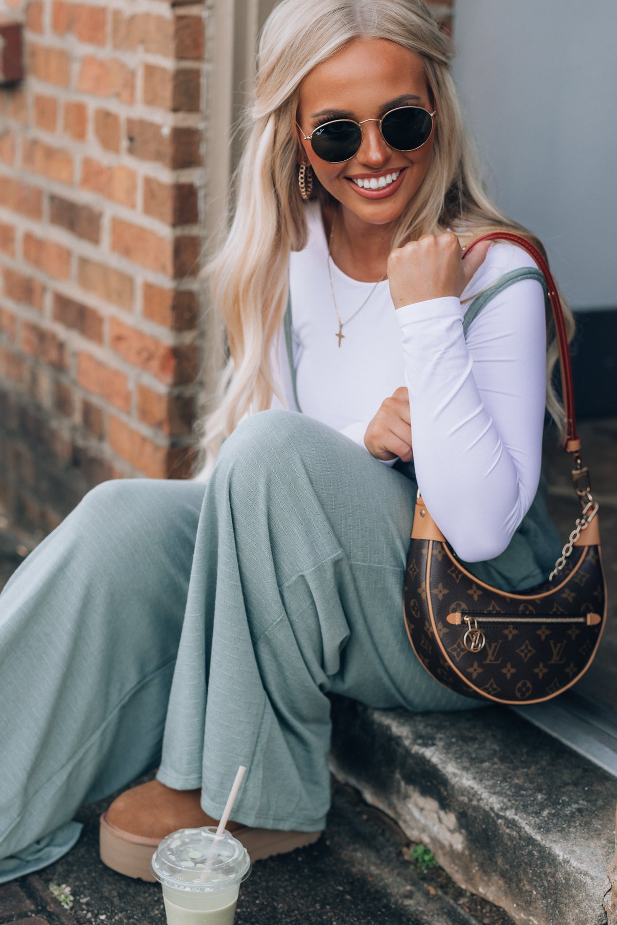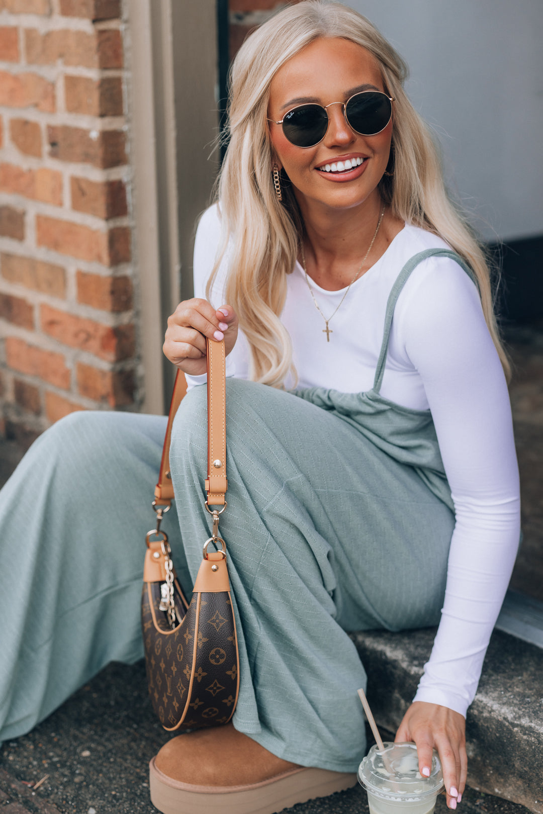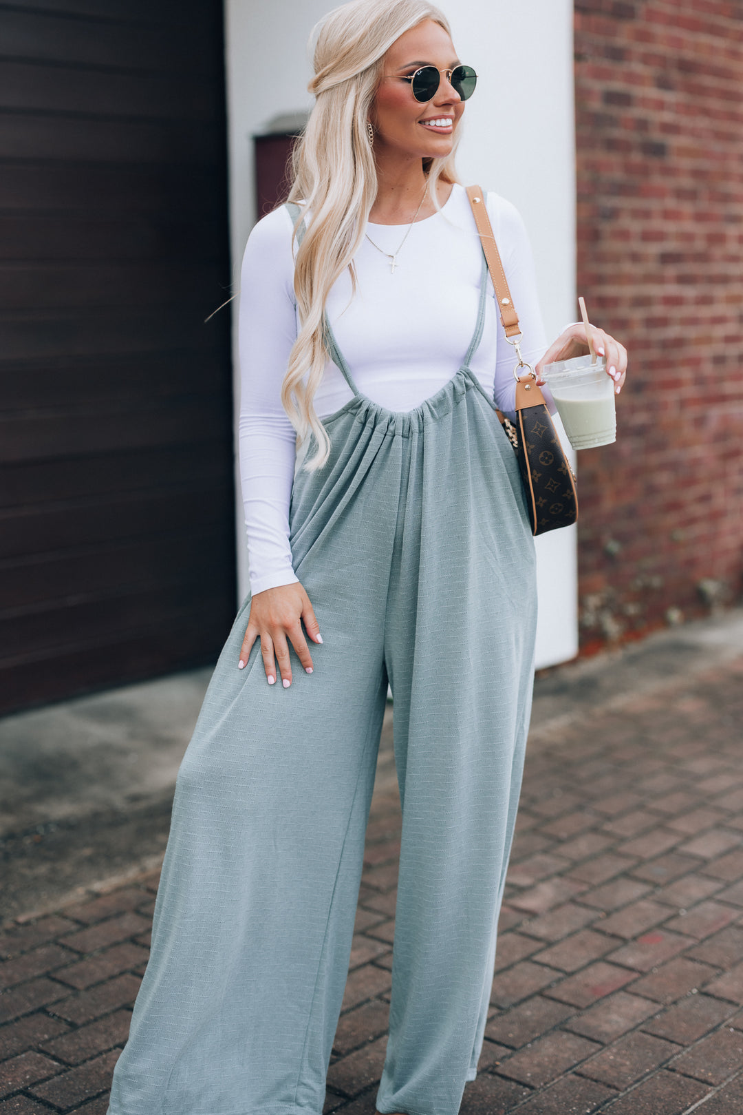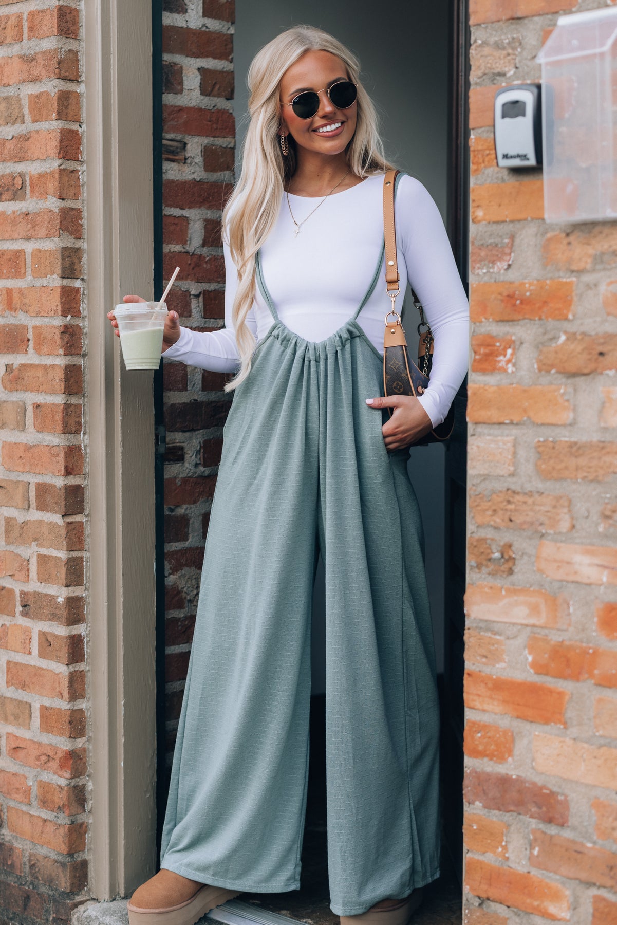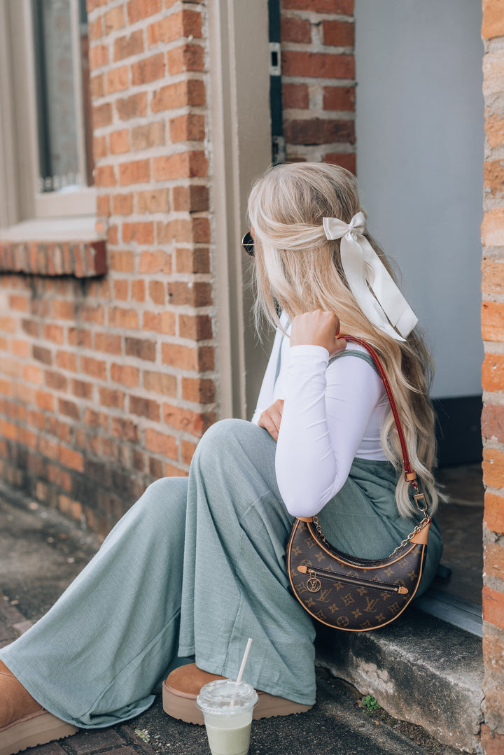 Hot Shot Wide Leg Suspender Pants (Sage)