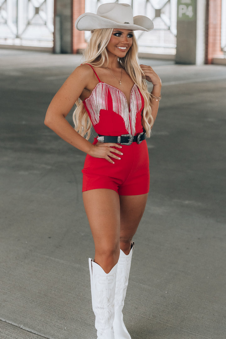 Hot Stuff Rhinestone Romper