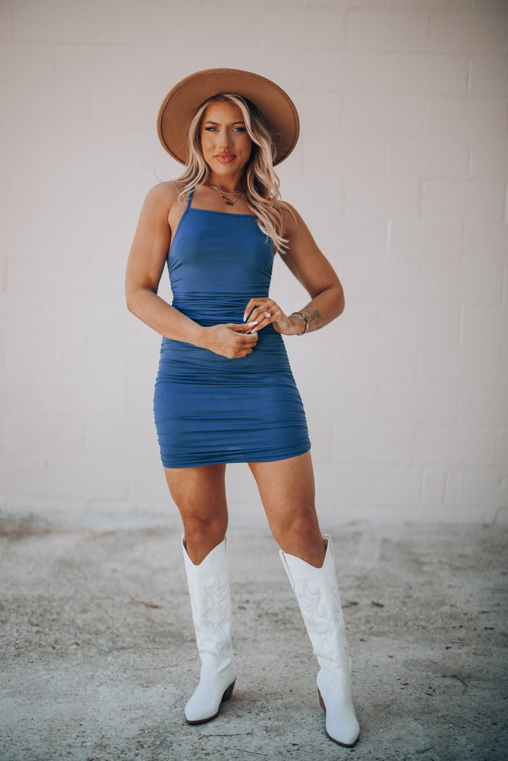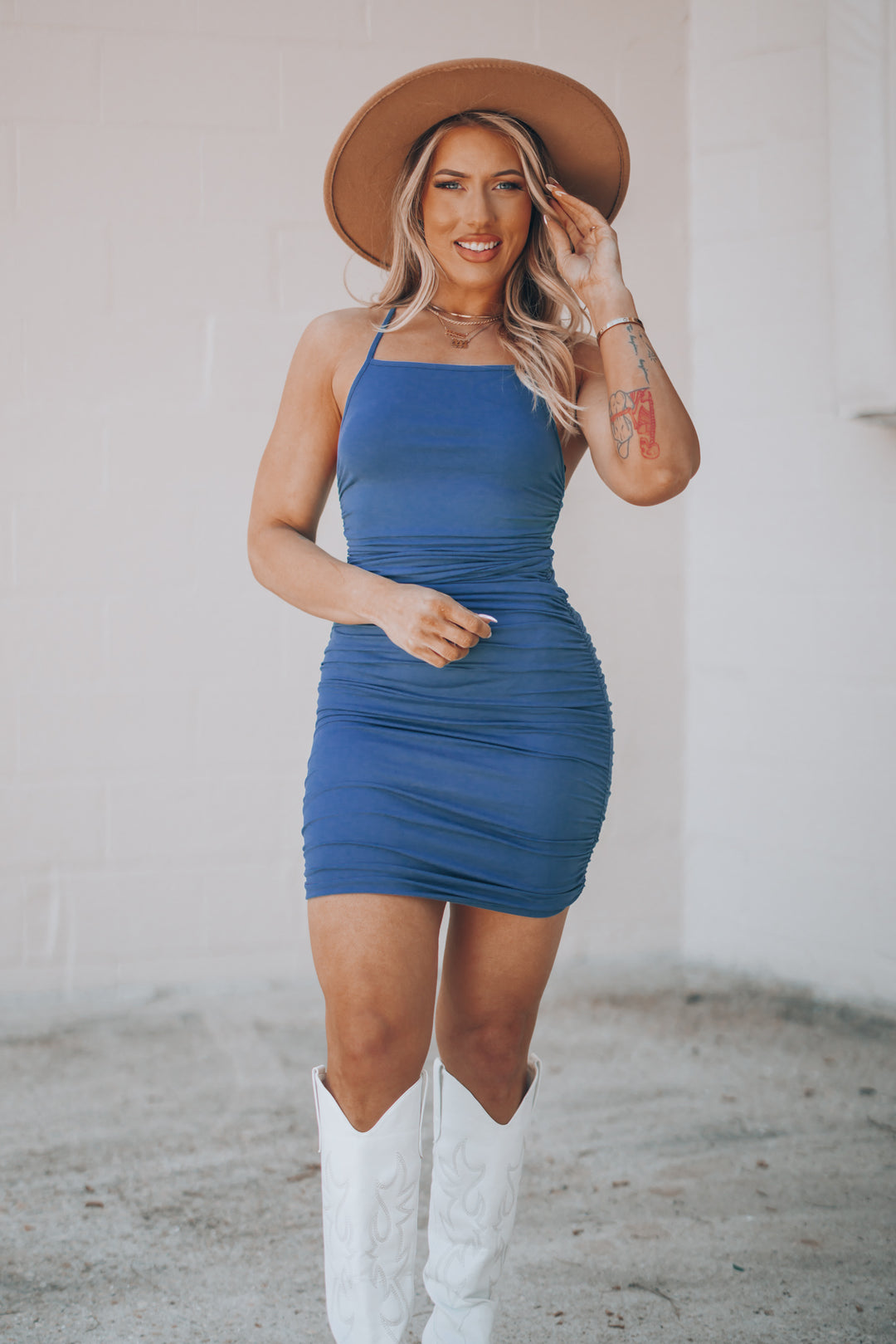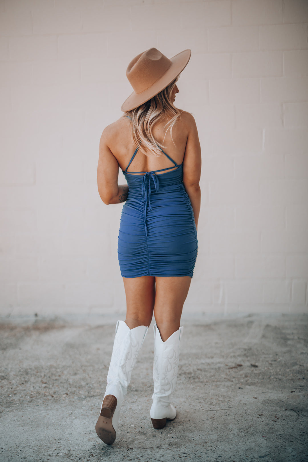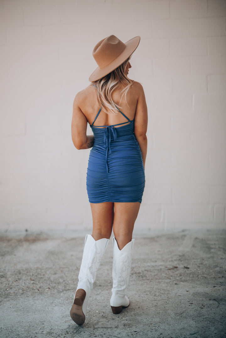 Key West Ruched Mini Dress (Ocean) FINAL SALE