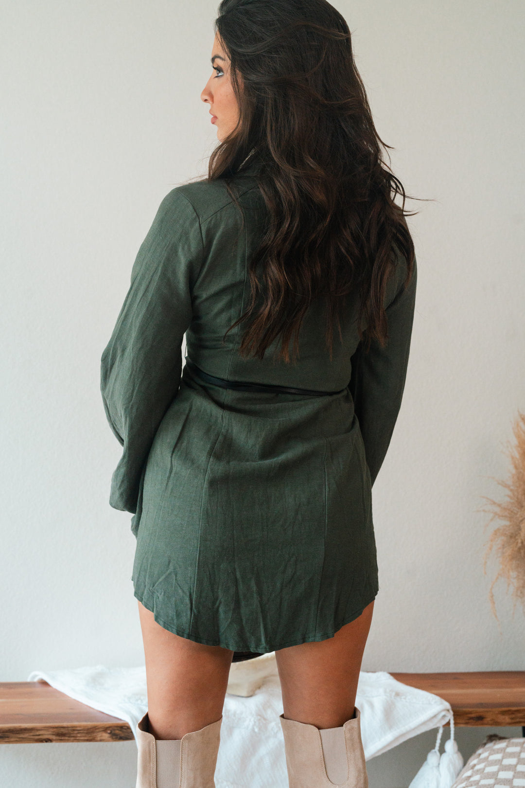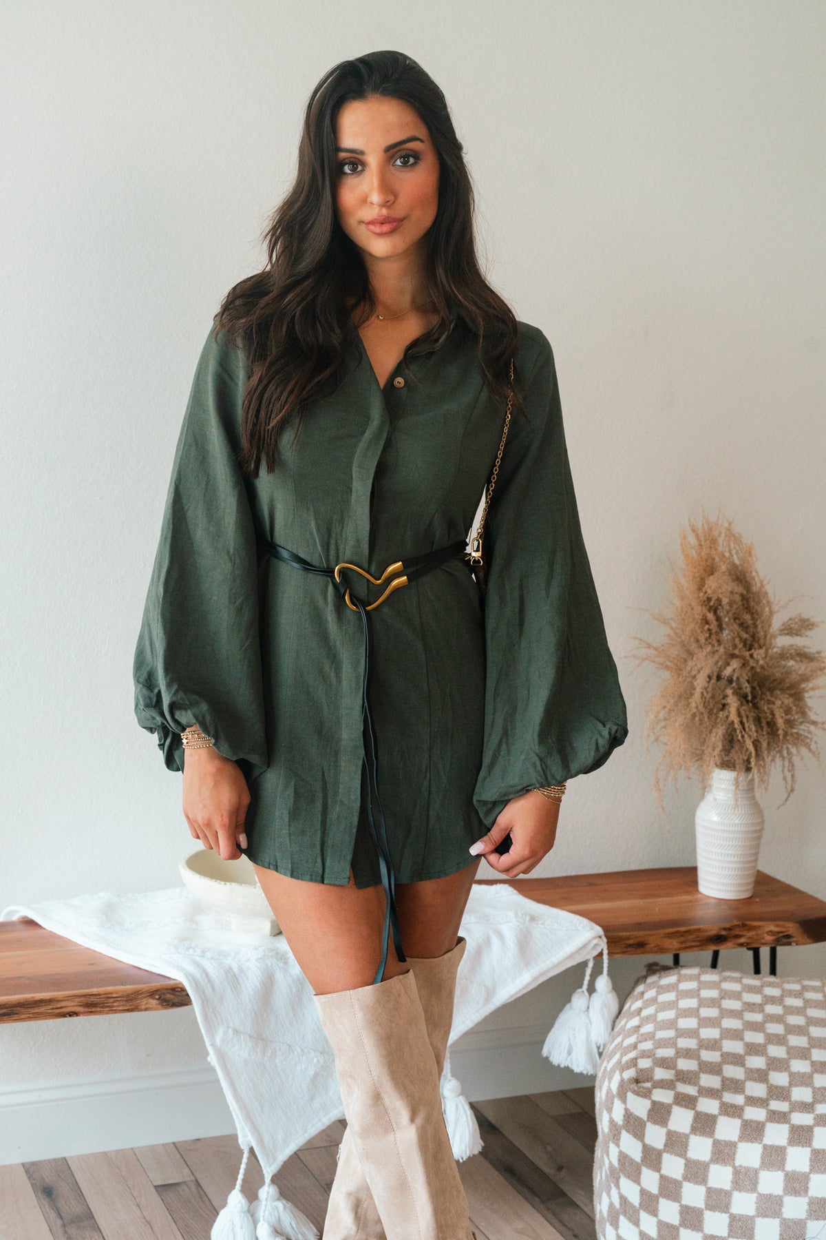 PINTUCK SLEEVE SHIRTDRESS W/ BELT