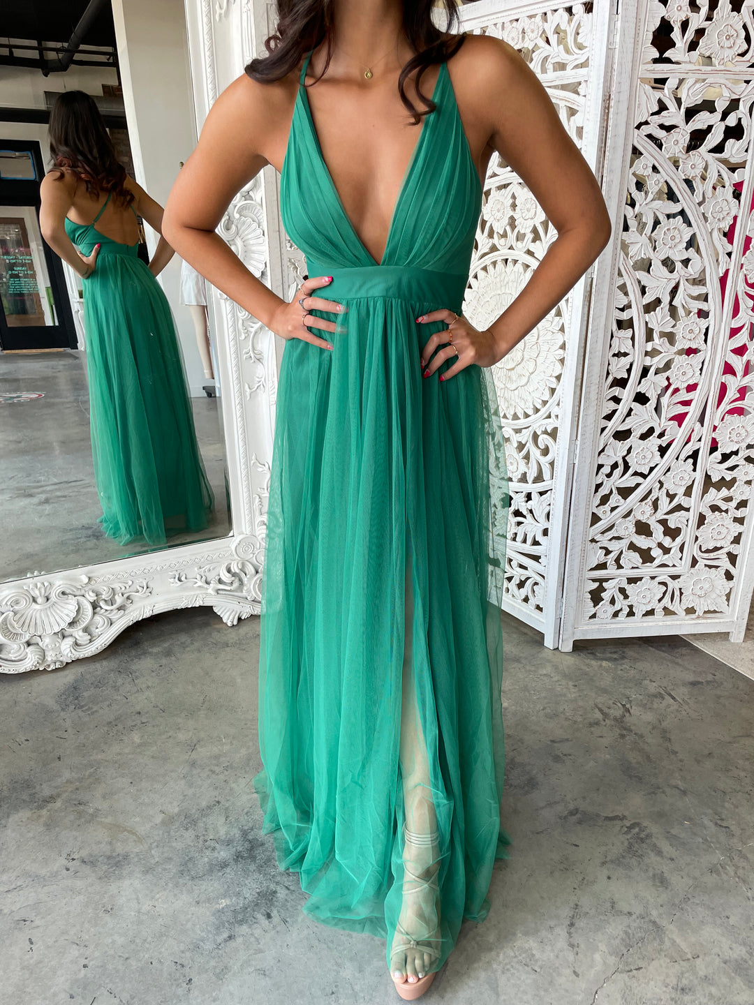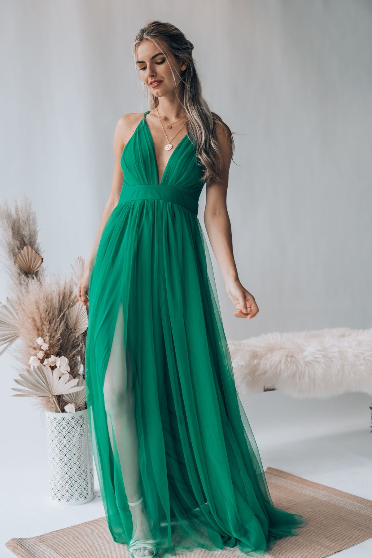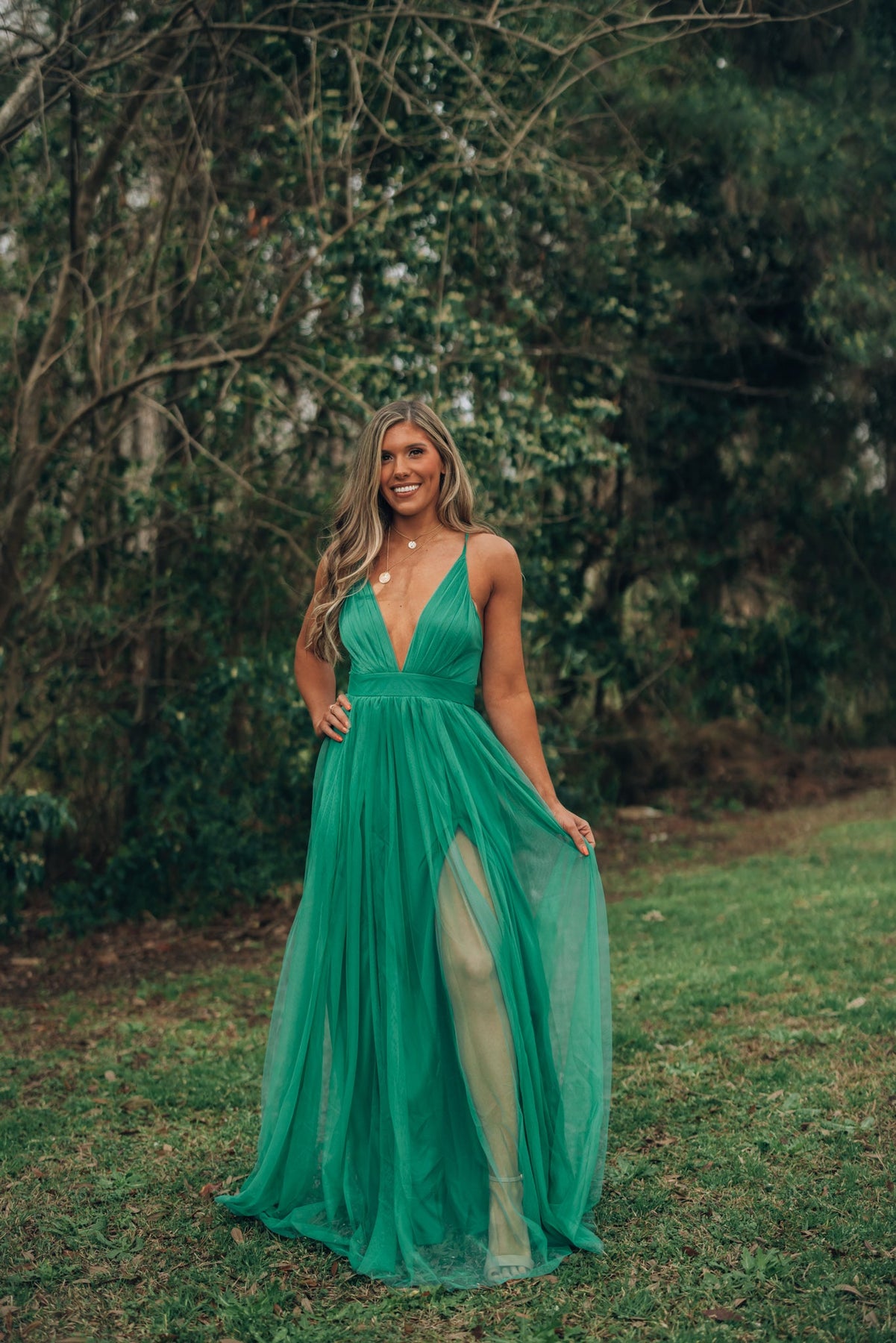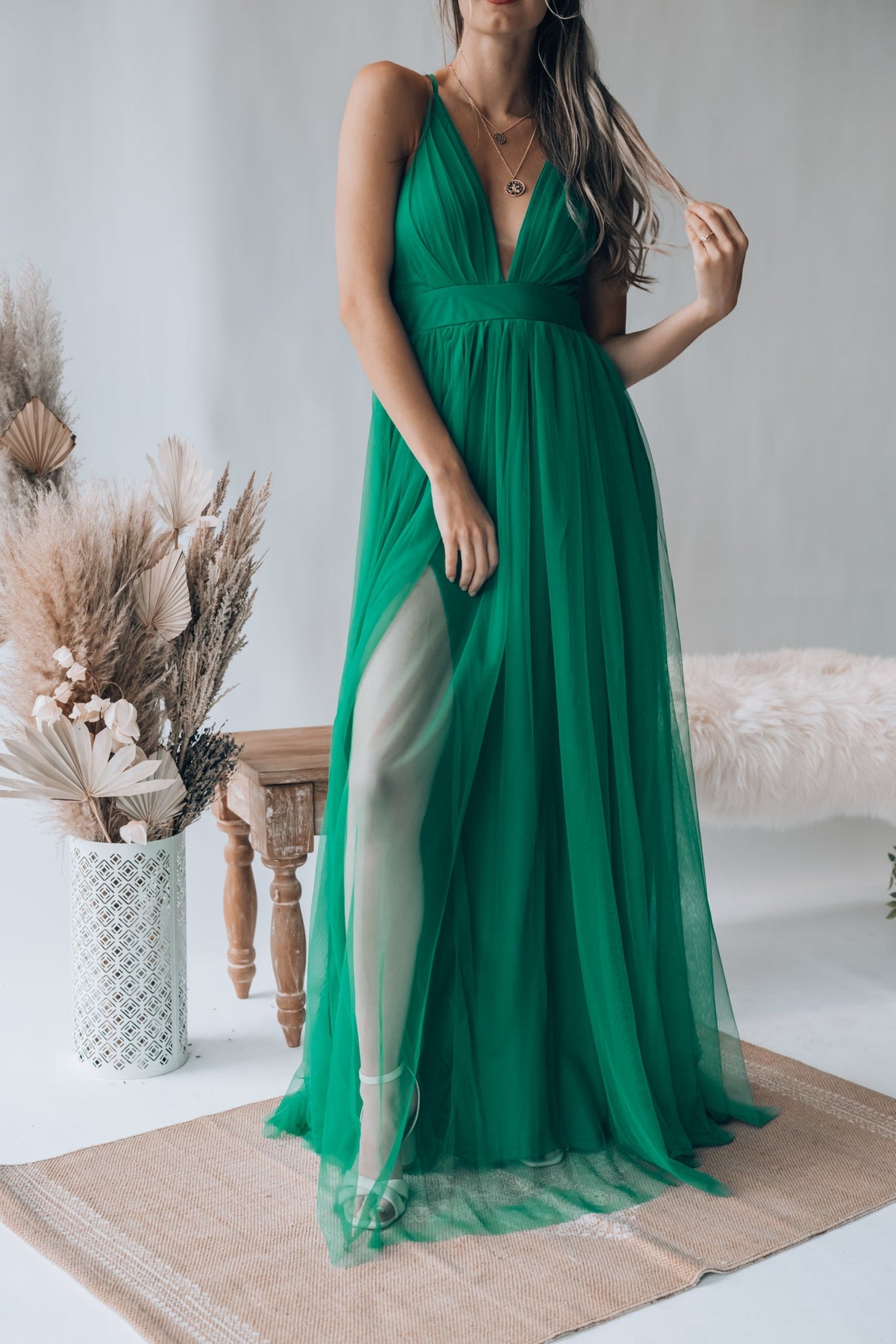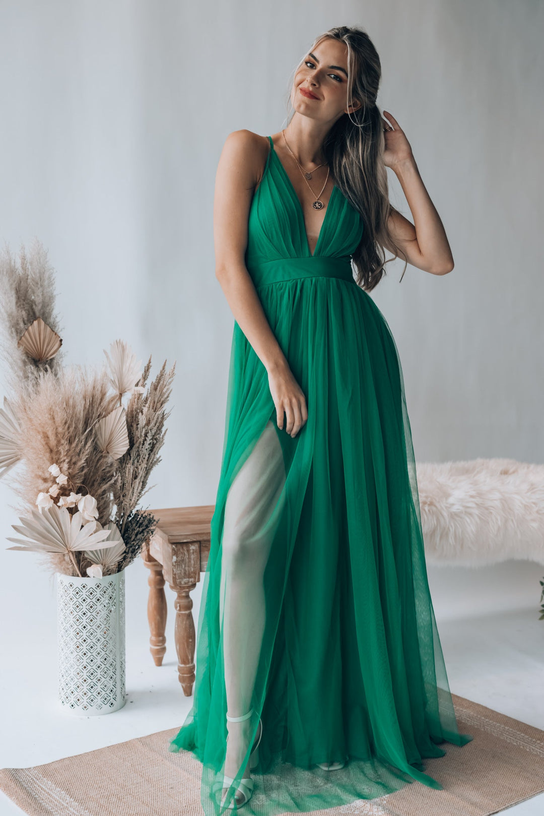 The Love Spell Gown in Emerald is the perfect addition to your wardrobe. Its intricate design and luxurious emerald fabric create an elegant look that stands out. The gown has been crafted with love and care, making it perfect for any special occasion.