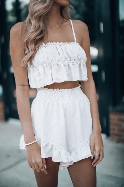 My Darling Ruffled Short Set (Off White) FINAL SALE