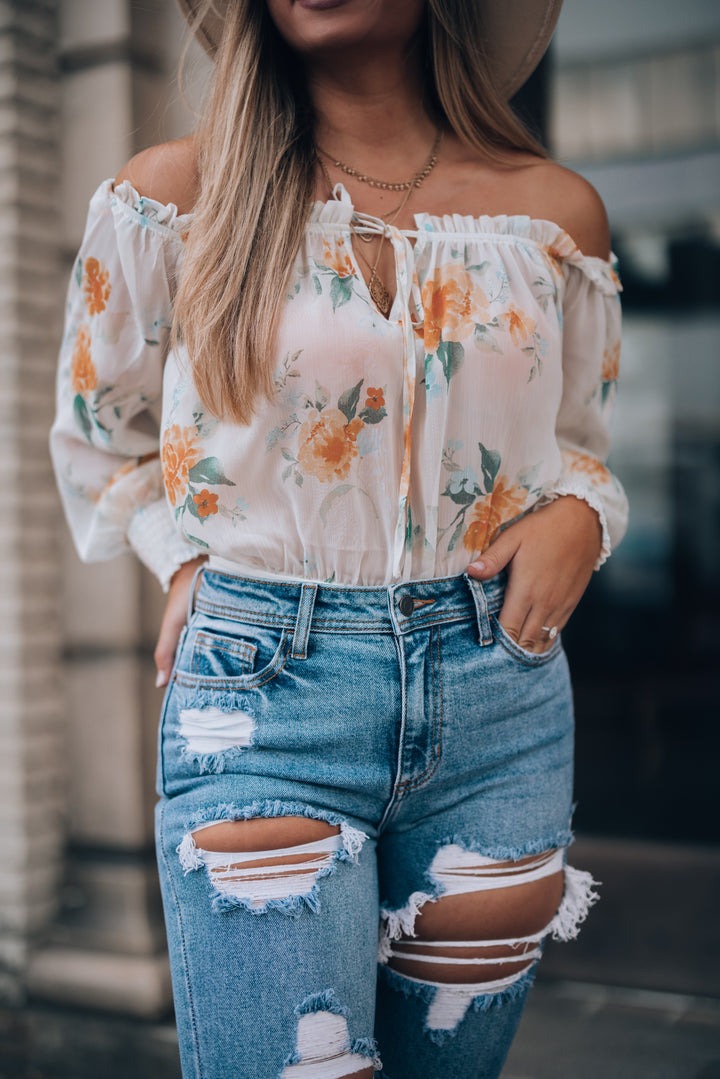Faye Floral Off Shoulder Bodysuit FINAL SALE