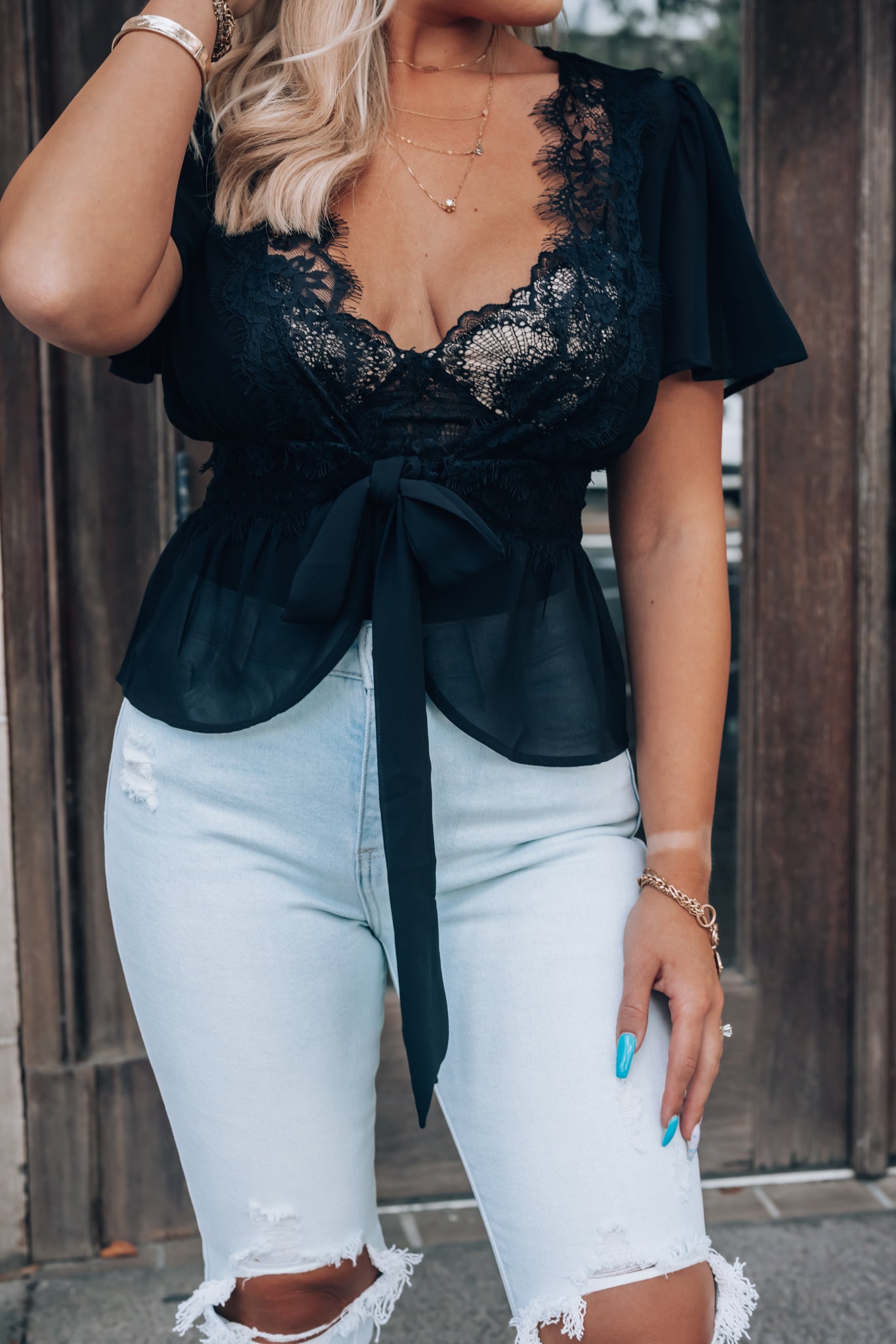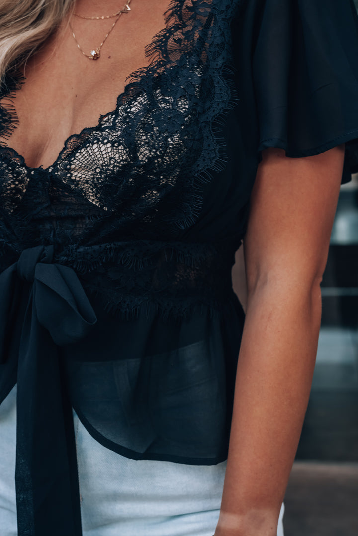 You won't need a pep squad to hype you up when you're already feeling yourself in our Fine Lines Lace Blouse! Sport this sexy top on your next night out for the best excuse to show off a new bralette!