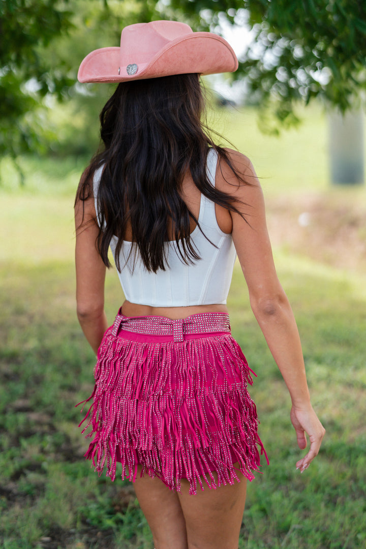 Rowdy Fringe Rhinestone Skirt (Hot Pink) FINAL SALE
