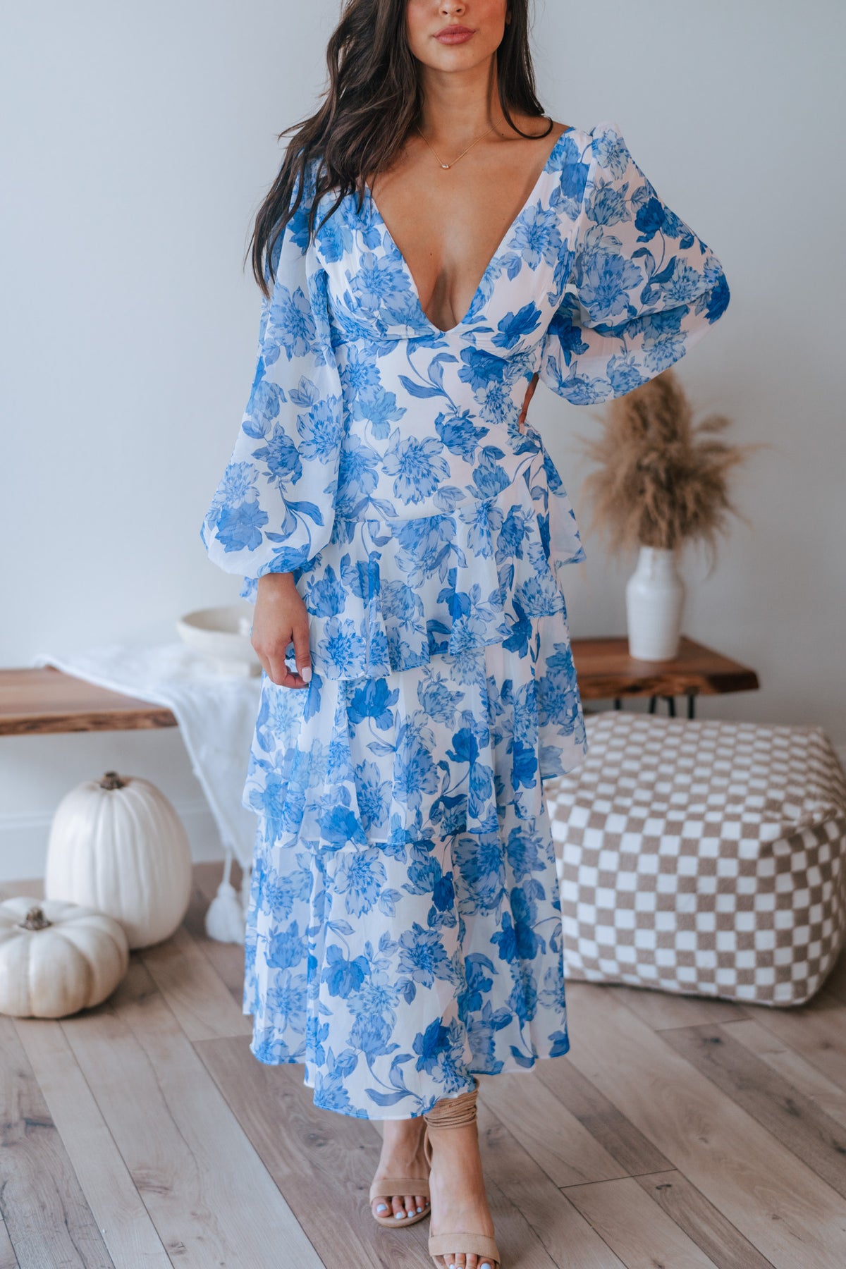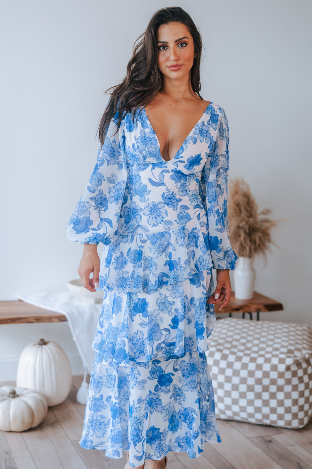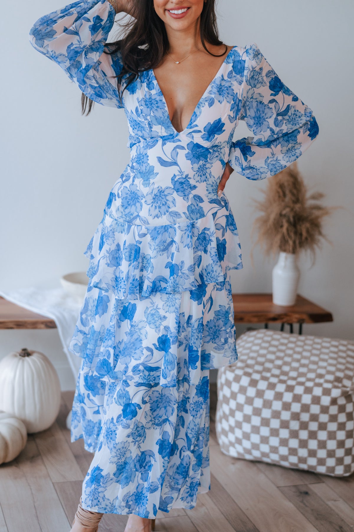 • LONG SLEEVE FLORAL TIERED MAXI DRESS