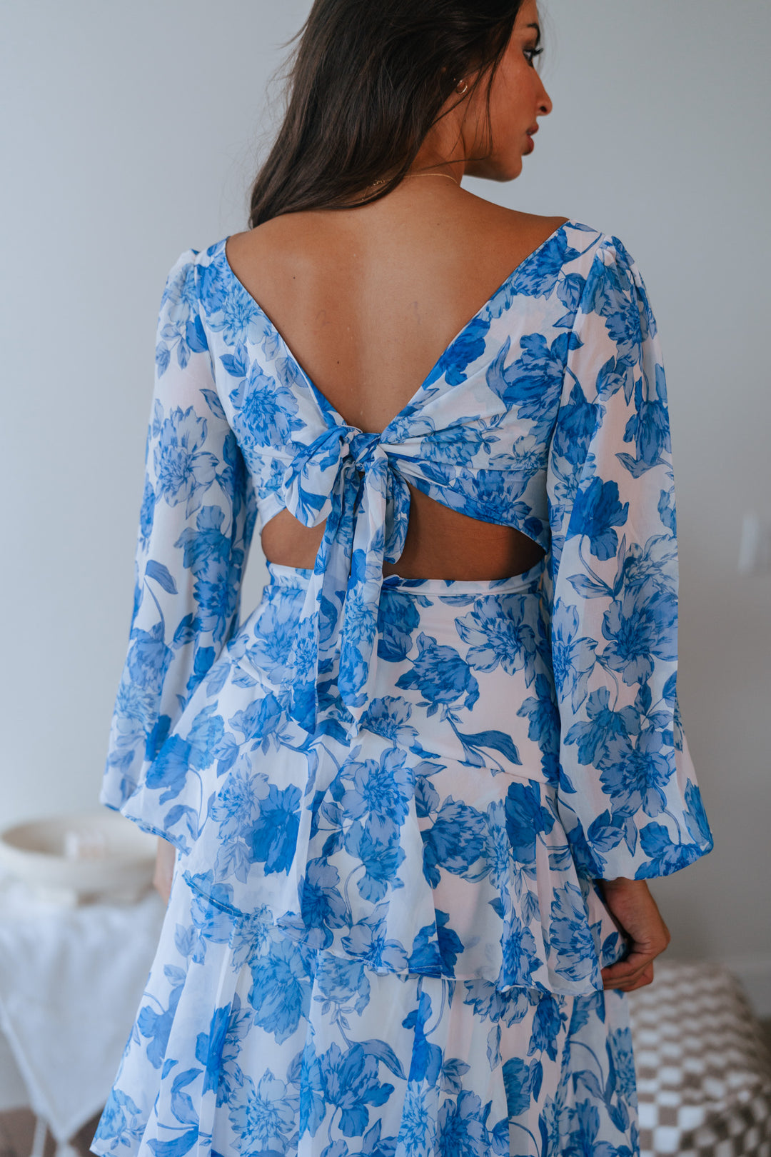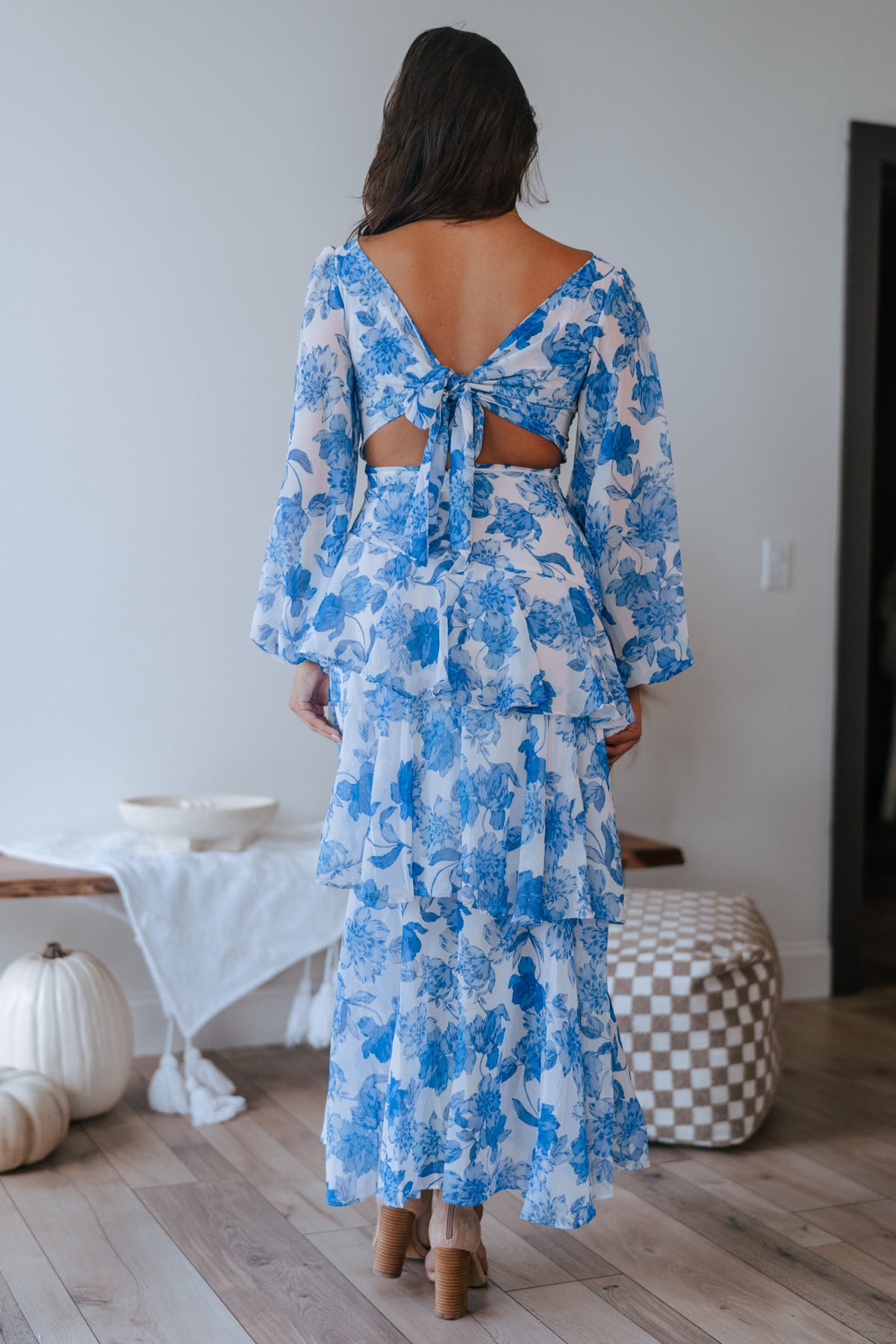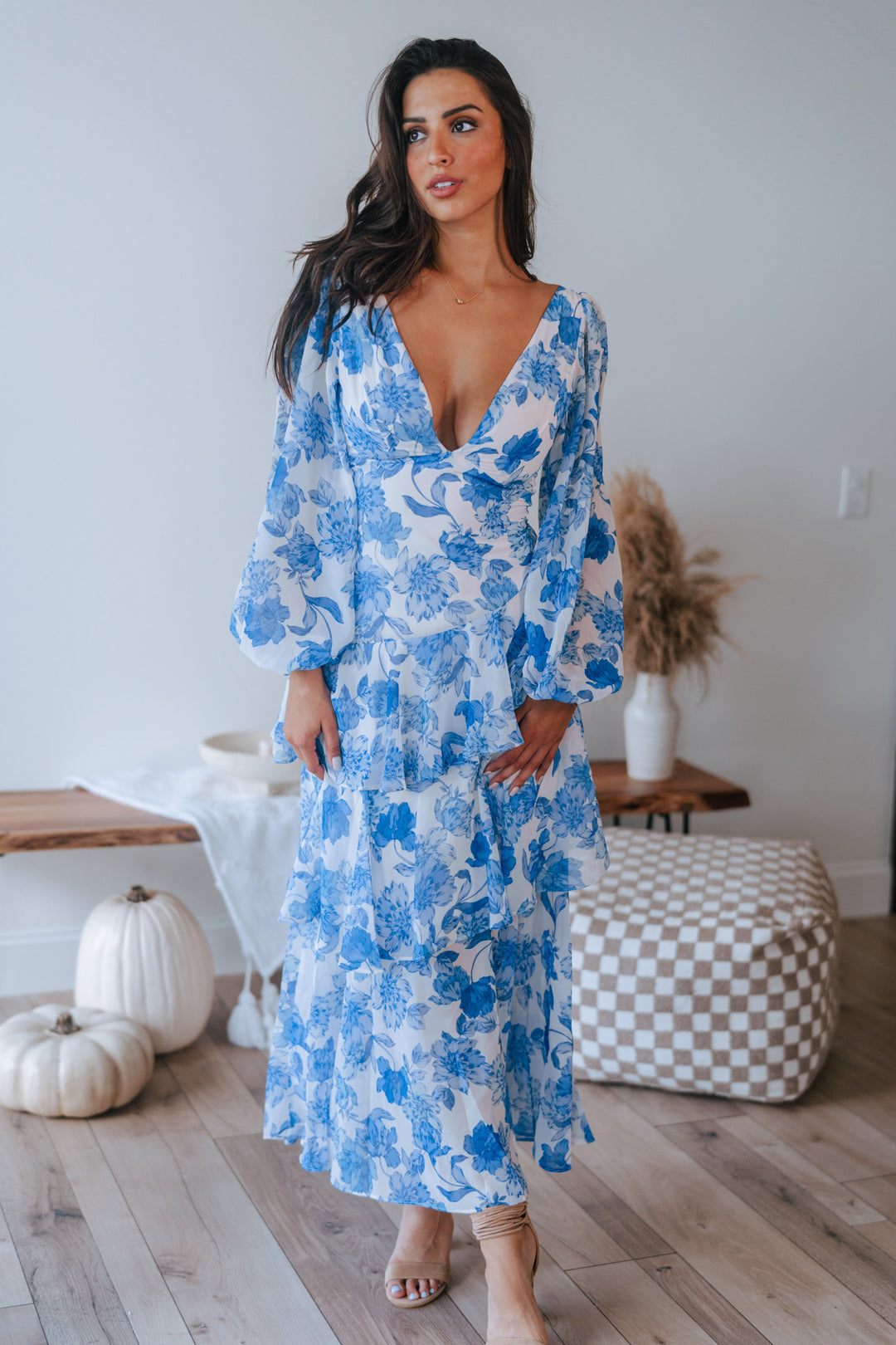 • LONG SLEEVE FLORAL TIERED MAXI DRESS