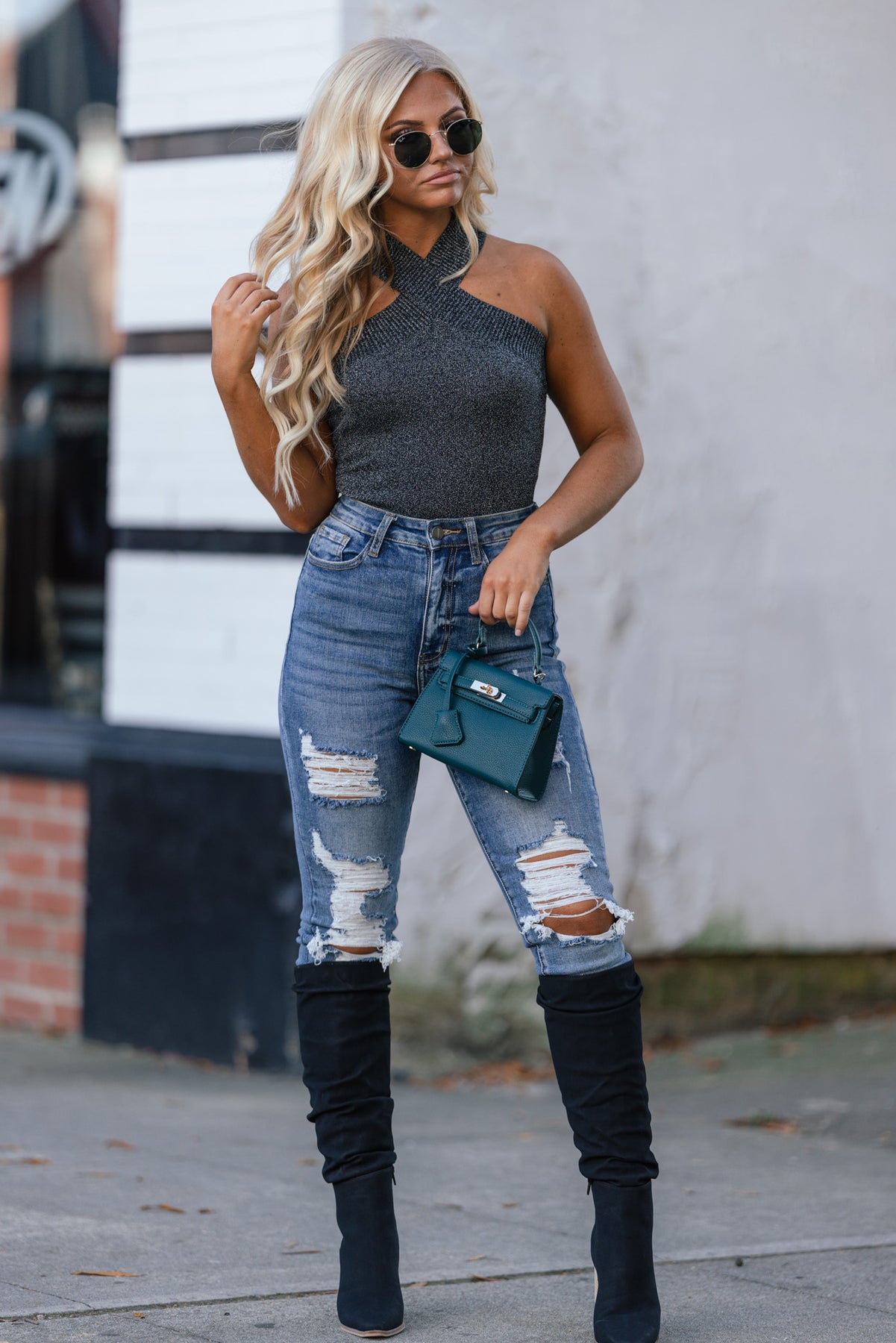 Staying Out Knit Bodysuit (Black) FINAL SALE